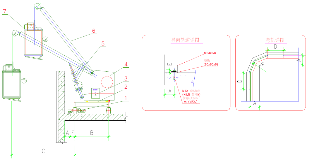 該機(jī)型為小型擦窗機(jī)設(shè)備,適用于樓頂布置花園平臺(tái)、觀光平臺(tái)的場(chǎng)合,不影響樓頂布置的整體美觀。輪載式擦窗機(jī)的行走通道屋面必須為混凝土剛性屋面,坡度小于2%。