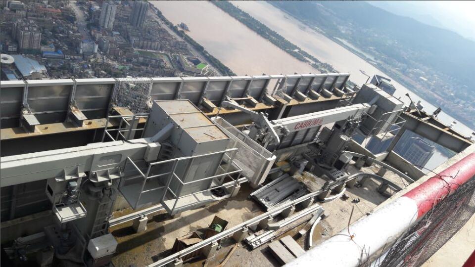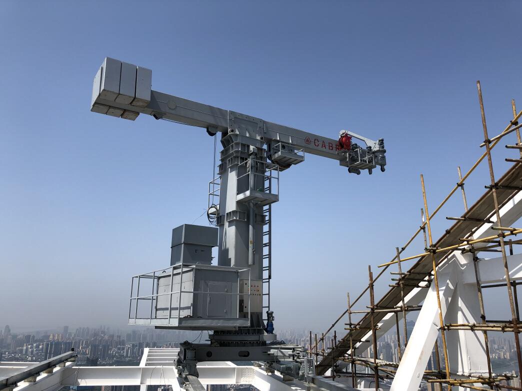 該項(xiàng)目所配備的屋面軌道式擦窗機(jī)工作高度460米,采用立柱升降式機(jī)構(gòu),擦窗機(jī)卷?yè)P(yáng)機(jī)構(gòu)為特殊定制。擦窗機(jī)在停機(jī)時(shí)可實(shí)現(xiàn)隱藏效果。