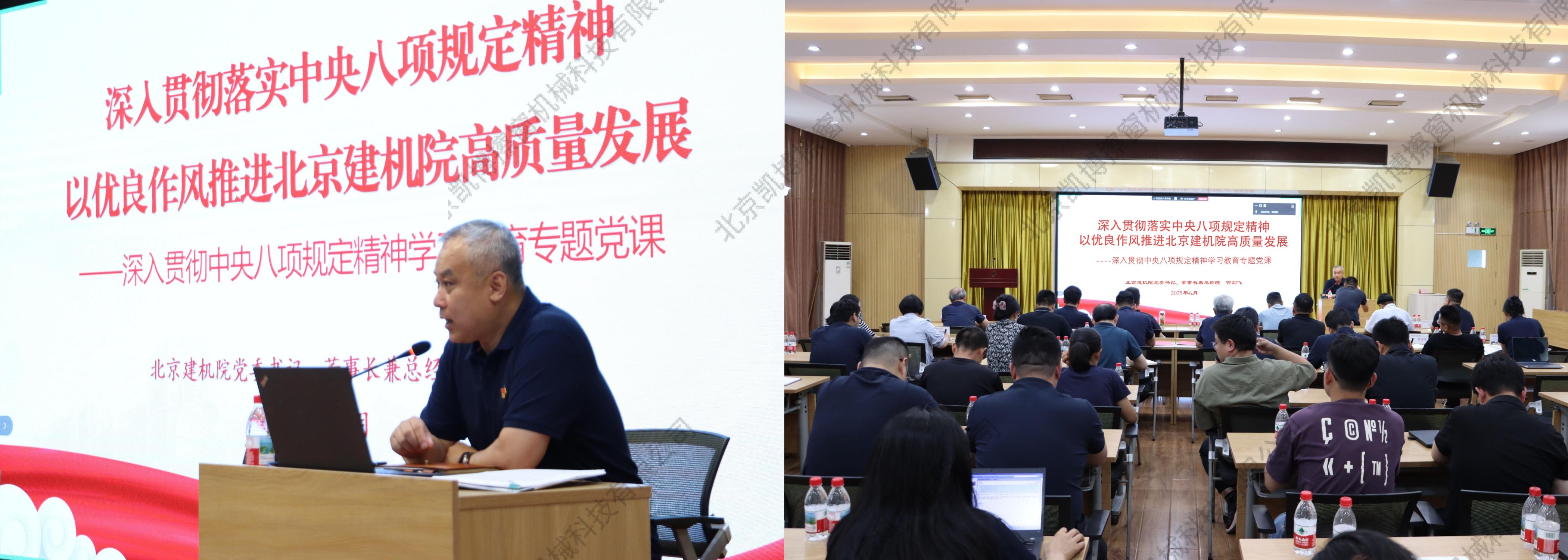 6月30日,北京建機(jī)院黨委書記、董事長兼總經(jīng)理宮劍飛以《深入貫徹落實(shí)中央八項(xiàng)規(guī)定精神,以優(yōu)良作風(fēng)推進(jìn)北京建機(jī)院高質(zhì)量發(fā)展》為主題講授專題黨課。黨課回顧黨的作風(fēng)建設(shè)的歷史脈絡(luò)與黨內(nèi)教育實(shí)踐寶貴經(jīng)驗(yàn),重點(diǎn)學(xué)習(xí)習(xí)近平總書記關(guān)于黨的作風(fēng)建設(shè)的重要論述,逐條解讀《中國建筑科學(xué)研究院有限公司關(guān)于嚴(yán)禁違規(guī)吃喝的十條規(guī)定》。宮劍飛指出,當(dāng)前北京建機(jī)院正處于創(chuàng)新突破關(guān)鍵時(shí)期,一要以上率下、示范帶動,領(lǐng)導(dǎo)干部要堅(jiān)持帶頭做、帶頭抓,堅(jiān)定不移地將作風(fēng)建設(shè)的各項(xiàng)要求落到實(shí)處;二要久久為功、建章立制,以梳理出的問題清單為靶向改進(jìn)工作,以制度建設(shè)固化作風(fēng)建設(shè)成果,推動作風(fēng)建設(shè)常態(tài)化長效化;三要涵育廉潔文化,將好作風(fēng)轉(zhuǎn)化為生產(chǎn)力,以嚴(yán)明的紀(jì)律、務(wù)實(shí)的作風(fēng)、昂揚(yáng)的斗志投身工作。