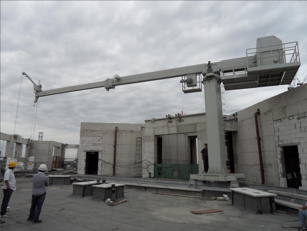 該項(xiàng)目采用3臺(tái)屋面軌道式吊臂伸縮設(shè)備,其中2臺(tái)擦窗機(jī)立柱高度在13-17米,采用二級(jí)升降系統(tǒng),盡可能地降低了設(shè)備的停機(jī)高度。